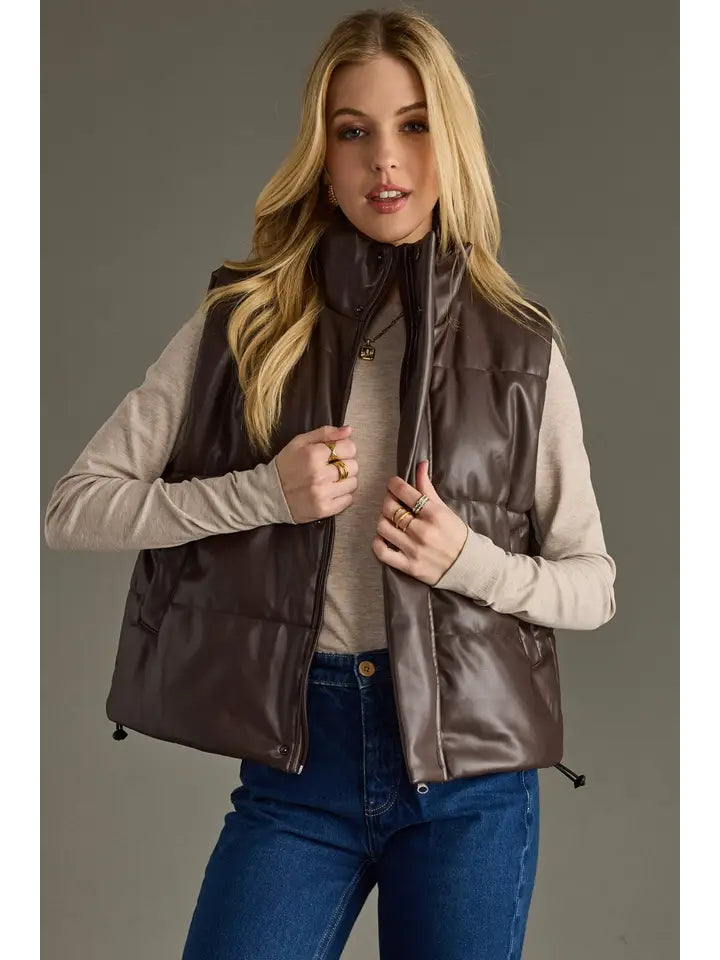 Brown Faux Leather Vest
