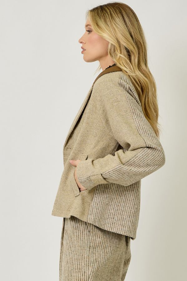 -Model is wearing Almond Mix and Oatmeal Mix with 61153 top and 61279 pants