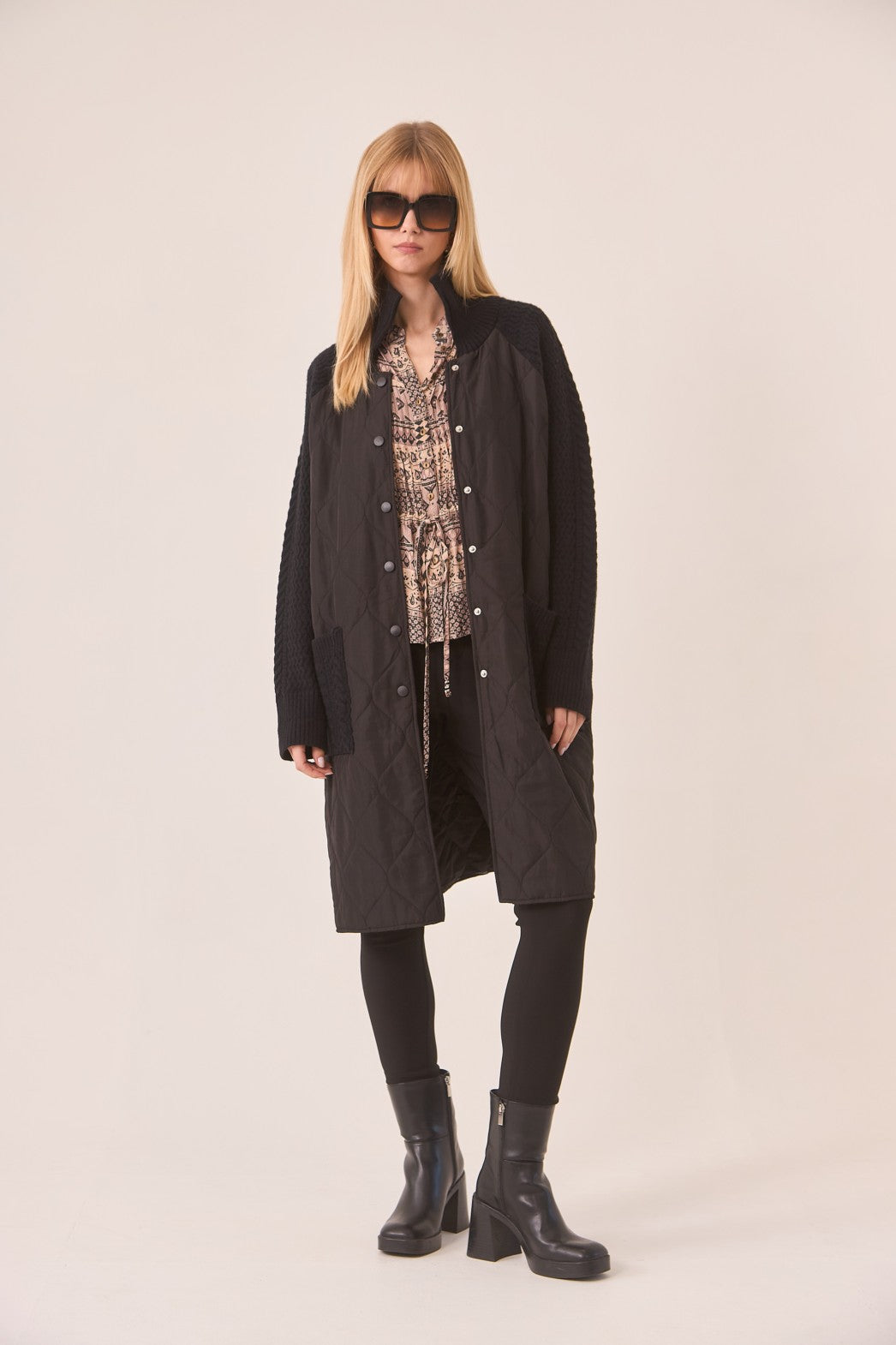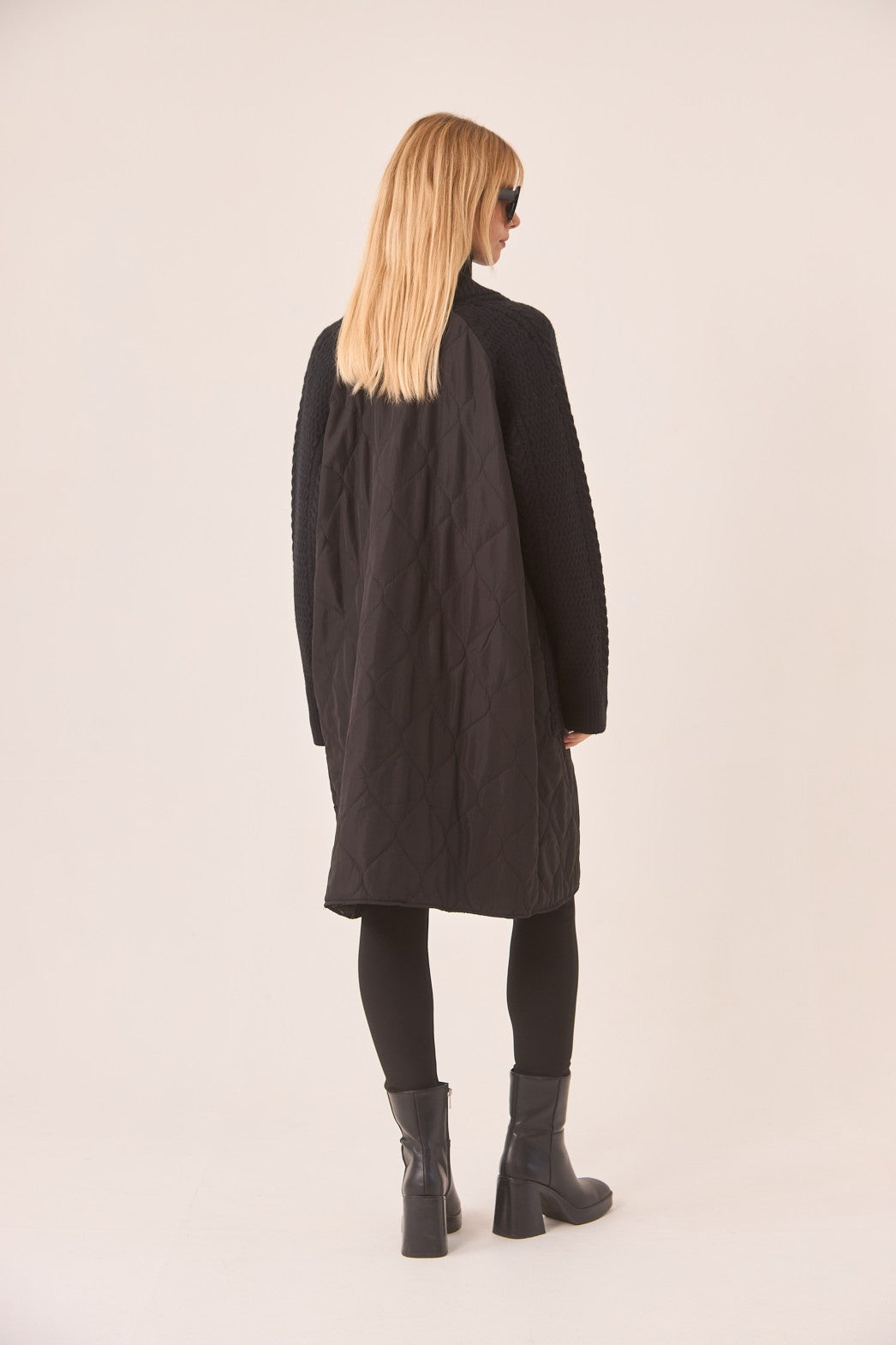 Quilted Combined Coat - quilted body with knit sleeves and pockets