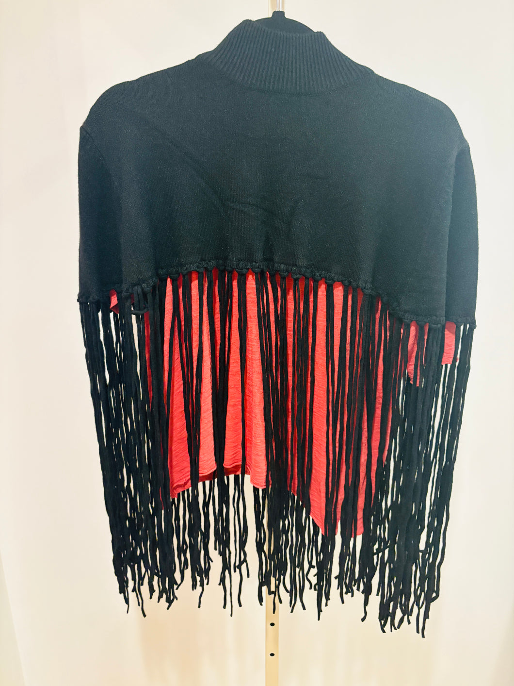 The Alma Shrug is going to be the most unique piece in your wardrobe. We love the fringe detail on this shrug. We think it is perfect to throw over a dress on cooler days or evenings, dress up a basic tee or blouse for added flare and warmth.